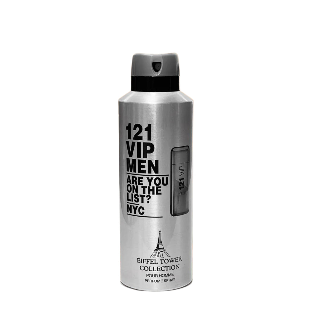 The 121 VIP Men Deodorant Perfume Body Spray 200 ML by Eiffel Tower is a premium fragrance product designed for men who enjoy a sophisticated, bold scent. It provides a refreshing and long-lasting fragrance that combines elegance and masculinity. Here’s a description of this product: