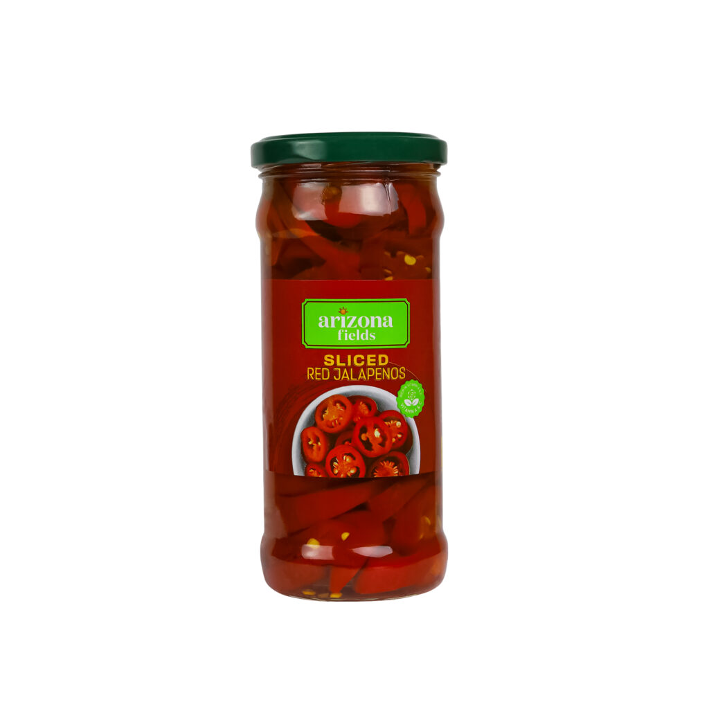Add a fiery kick to your culinary creations with Arizona Fields Jalapenos Red Sliced. These premium 370g jars contain perfectly sliced red jalapenos, harvested at peak ripeness for optimal heat and flavor. Ideal for enhancing Mexican dishes, sandwiches, pizzas, or charcuterie boards. The convenient pre-sliced format saves preparation time while delivering consistent heat and quality.
