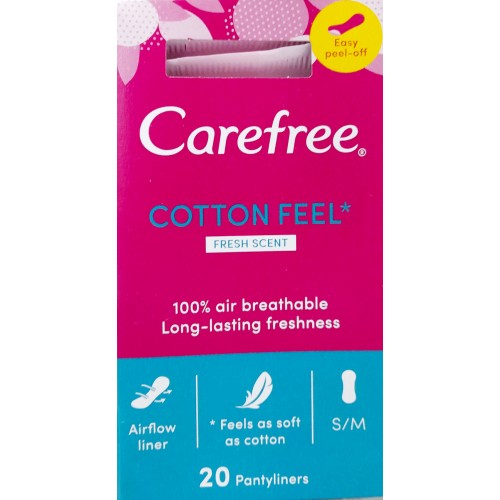 CAREFREE® COTTON panty liners are 100% air breathable and contain cotton extract. They provide a long lasting freshness. Besides daily underwear protection, it gives you a soft, comfortable feeling every day.