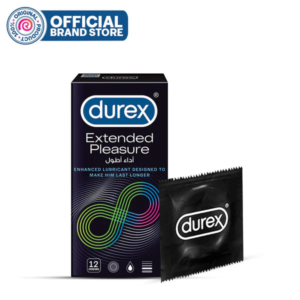 Durex Extended Pleasure Condoms (12 Pack) are designed to provide longer-lasting performance during intercourse. These condoms are infused with a special lubricant containing benzocaine, a mild numbing agent, which helps to delay ejaculation and extend pleasure for both partners. Here's more information about the product: