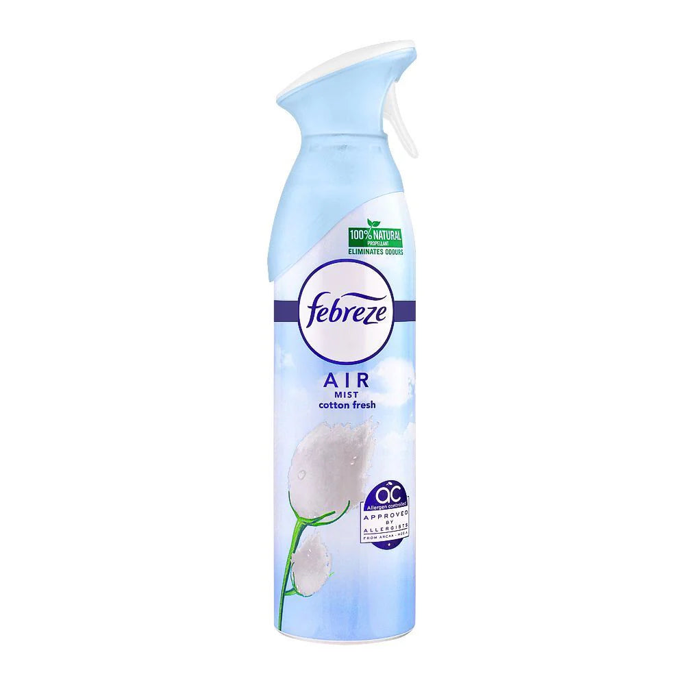 Febreze Air Mist Cotton Fresh (300ml) is a popular air freshener that helps eliminate odors and refresh your living space with a clean, fresh scent. Here’s a detailed guide on how to use it, along with its ingredients and additional information: