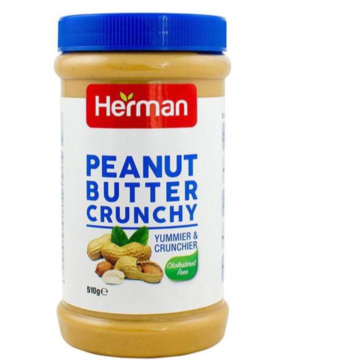 Herman Peanut Butter Crunchy 510 g offers a rich, nutty flavor with a satisfying crunchy texture. Made from high-quality roasted peanuts, it provides a natural source of protein and healthy fats, ideal for boosting energy and supporting a balanced diet. Perfect for spreading on toast, adding to smoothies, or enhancing recipes, this peanut butter combines taste and nutrition for everyday use.