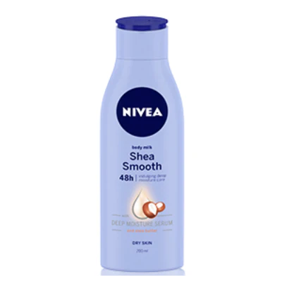 Your wait for softer, moisturized skin that lasts is over. The NIVEA® Shea Nourish Body Lotion (previously called Shea Daily Moisture Body Lotion) is a lightweight formula that is infused with our Deep Moisture Serum and Natural Shea Butter for noticeably smoother skin. The lotion gently melts into skin leaving it silky and smooth for 48 hours with just 1 application.