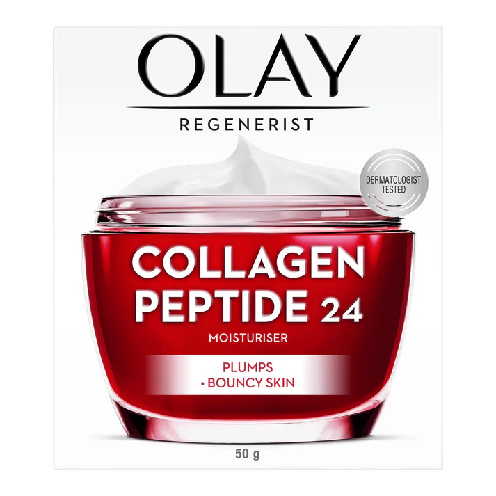Olay Regenerist Collagen Peptide 24 harnesses advanced peptide technology to deliver intensive hydration and visible skin renewal. This lightweight 50g moisturiser penetrates deeply to boost collagen production, reducing fine lines and restoring elasticity for a firmer, more youthful complexion. The 24-hour hydration formula works continuously to improve skin texture and luminosity. Ideal for mature or compromised skin seeking professional-grade anti-aging results without heaviness.