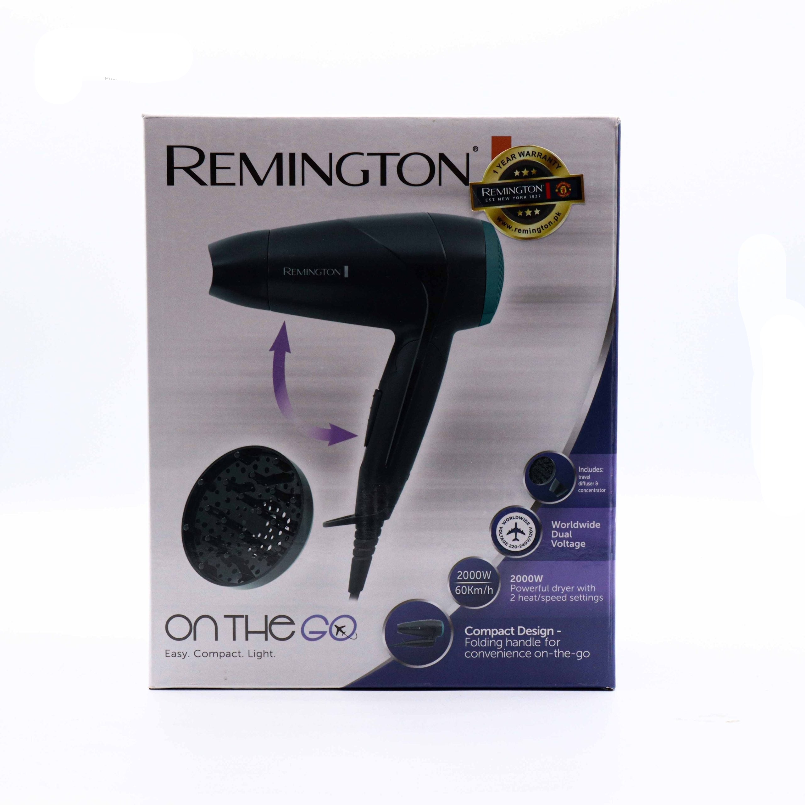 The Remington Hair Dryer D1500 delivers professional-grade drying performance with advanced ionic technology that reduces frizz and enhances shine. Featuring multiple heat and speed settings, this lightweight dryer accommodates various hair types and styling preferences. The concentrator nozzle attachment enables precise airflow for controlled styling, while the cool shot button sets your style effectively. Engineered for durability and efficiency, the D1500 combines salon-quality results with everyday practicality for polished, healthy-looking hair.