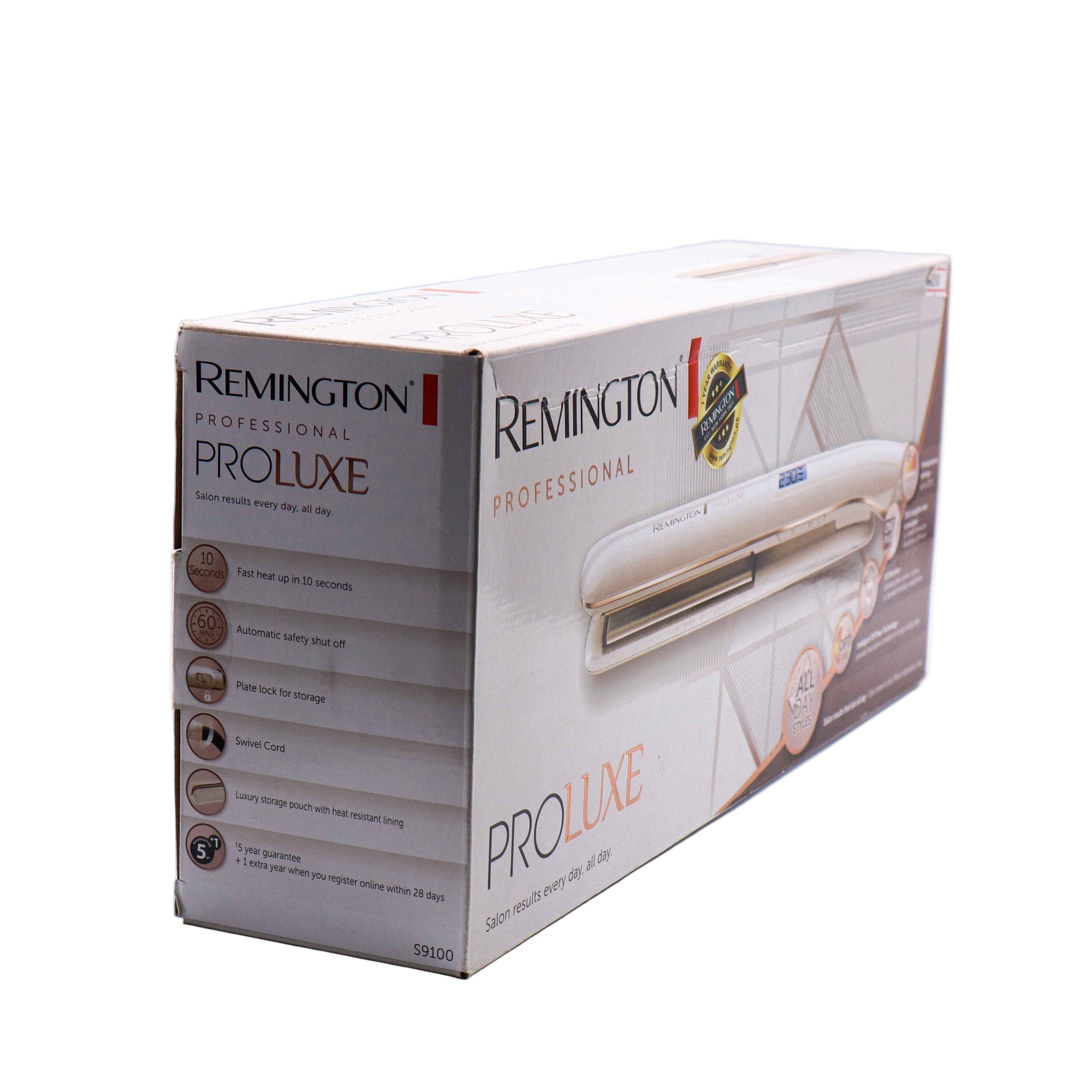 The Remington Hair Straightener S9100 delivers professional-grade straightening with advanced ceramic technology that glides smoothly through hair while minimizing frizz and heat damage. Featuring adjustable temperature settings, this straightener accommodates all hair types, from fine to thick and coarse. The ergonomic design ensures comfortable handling during styling sessions, while the quick heat-up time gets you ready in minutes. Ideal for achieving sleek, polished results at home or on the go.