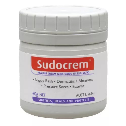 Sudocrem Antiseptic Healing Cream is the nation's favourite nappy rash cream, soothing, healing and protecting sore skin. It is versatile enough to be used by the whole family on a number of other skin conditions such as eczema, sun burn, cuts, grazes and minor burns. The unique formula works in three ways. It contains an emollient that soothes sore or inflamed skin. Contains ingredients recognised for their healing properties. A water-repellent base forms a protective barrier, helping to stop any irritants (urine and faeces) coming into contact with the skin.Medicinal product. For relief of napkin rash, eczema, bed sores. Active ingredients, Zinc Oxide Ph. Eur. 15.25%, Benzyl Alcohol B.P. 0.39%, Benzyl Benzoate B.P. 1.01%, Benzyl Cinnamate 0.15%, Lanolin (Hypo-Allergenic) 4%(W/W). Please read enclosed leaflet carefully before use. Store out of reach and sight of children. - Product Details: Home, Baby & Pregnancy, Baby Health Care, Baby Skincare, Sudocrem Antiseptic Healing Cream 60g.